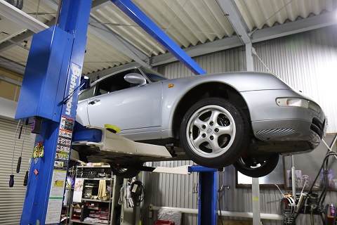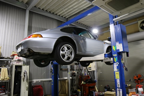 1995年タイプ993カレラ 6MT 正規物 走行4.1万キロ 修復歴無し 交換パネル無し 検査受け渡し 昨日足回りリフレッシュ完成 本日よりクレヨンにてエンジン下ろして整備スタート