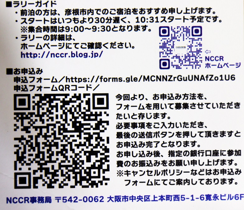 今年のキャッチコピー。NCCRラリー参加で北陸応援♪