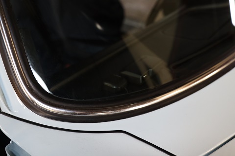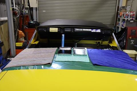 73Sレストモッドはフロントガラスの交換作業の確認キワの劣化での白く濁っていたところが無くなりスッキリと見えます