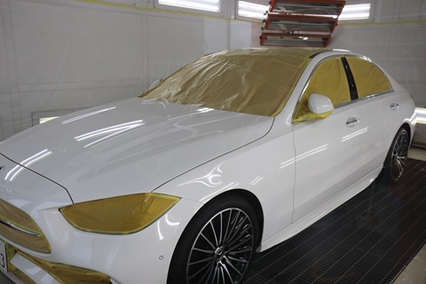 綺麗綺麗工場では930磨き込み メルセデスベンツWコーティング施工中