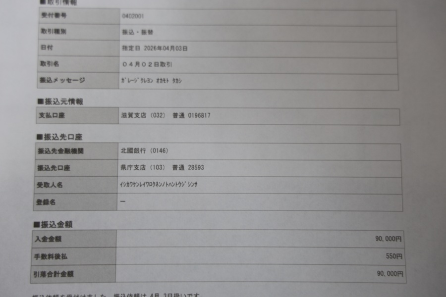 今回の茨城 栃木 京都のオーナーから3台の譲り受けで90,000円石川県令六年能登半島地震災害義援金いたしましたので前回までの合計10,402,850円+90,000円で総額10,492,850円と成りました。