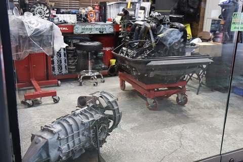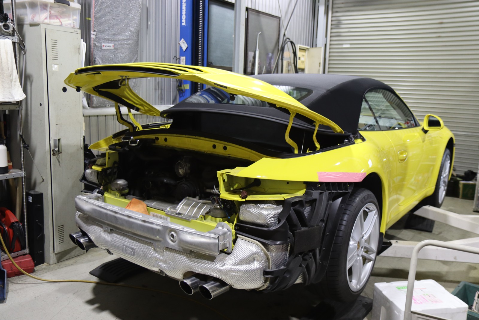 整備工場では991カブリオの納車整備と930のエンジンを分解中