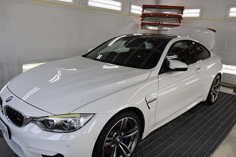 綺麗工場ではBMWのM4Wコーティング施工の下準備磨き込み2日目。