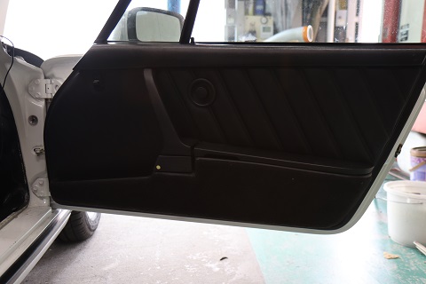 86カレラのドアの内張り ライトウエート仕様の内張りクレヨンのデットストックを使いました。