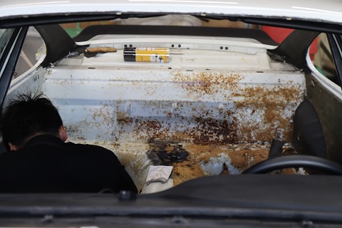 34年ぶりの再会した964タルガはリフレッシュ整備スタート前に下回りの