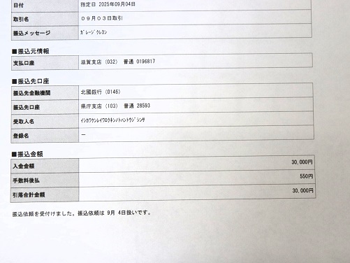 本日一台3万円で30,000円石川県能登半島地震の義援金をいたしました。