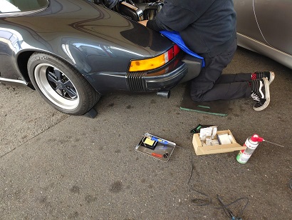75年930はステアリングラックとハンドルの間のジョイントから音確認と電気系一部リフレツシュの里帰り整備 930アニバーサリー日々微調整が続く。