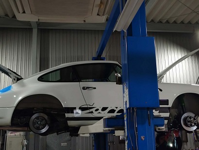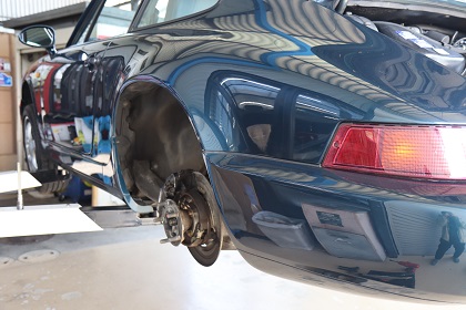 パワーステアリング系のトラブルで入庫した964完成後試運転でリアブレーキから音?